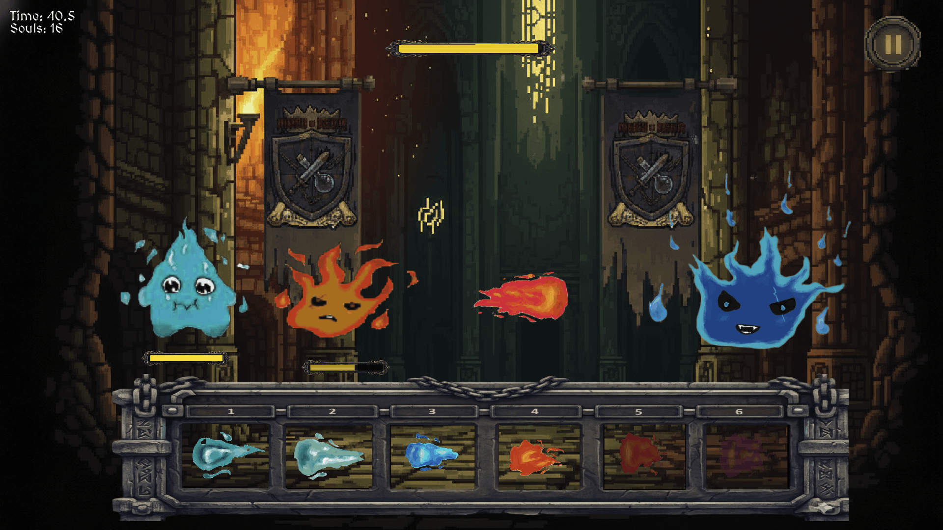 A lonesome wizard seeks to flee his homeworld due to being persecuted for having magical powers which people fear. As the wizard is fleeing he stumbles upon a mysterious dungeon. This dungeon started calling to him. He believes that this dungeon may lead to a new world where he can practice his elemental magic freely. As he starts exploring the dungeon he faces many dangerous foes. Using his elemental minions he conquers each fight ahead of him, each fight getting more dangerous. The wizard learns that he can use the souls of his fallen foes to evolve his elementals thus increasing their combat potential and gaining new abilities.